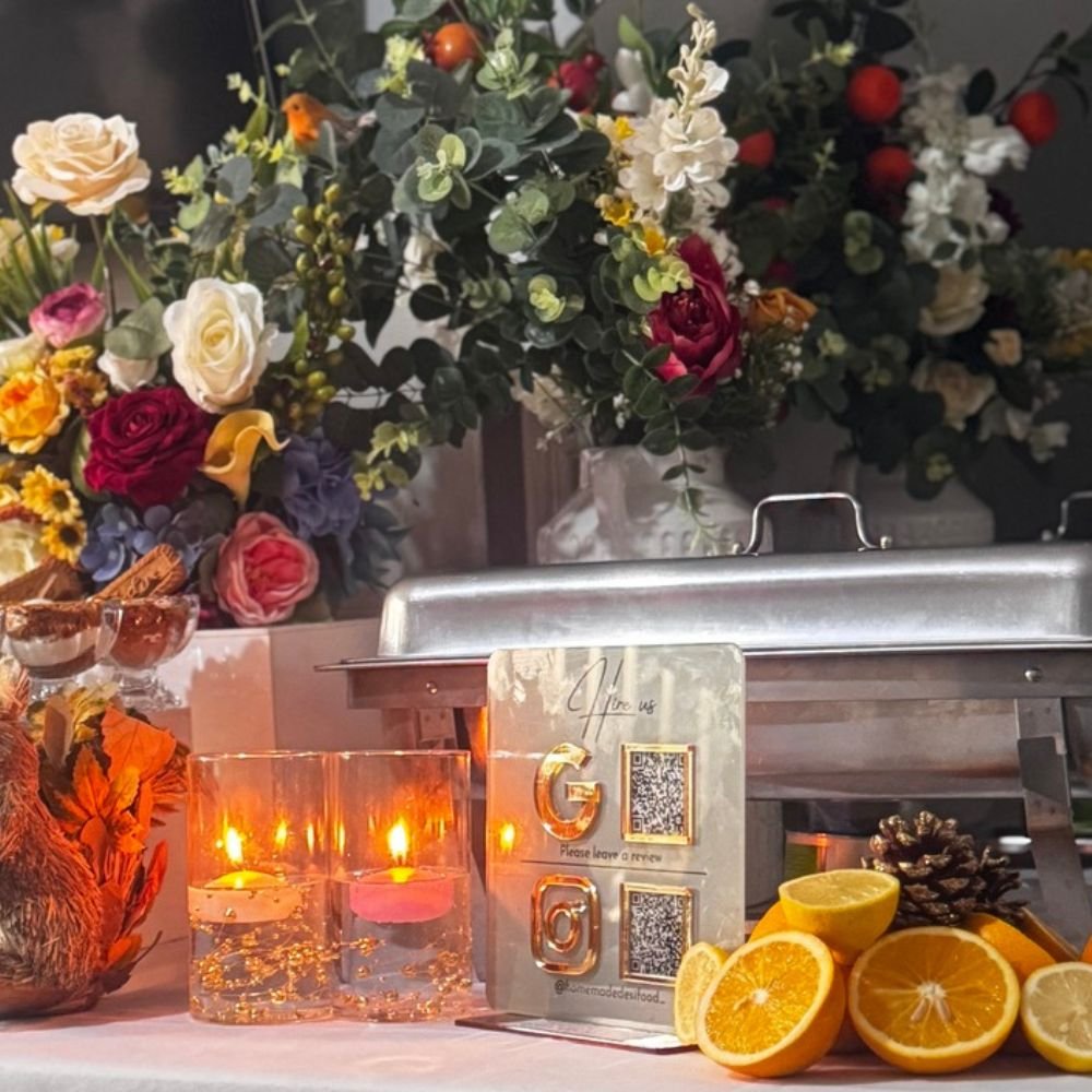 The atmosphere of an event is shaped not only by the food served, but also by the way the space is presented.
