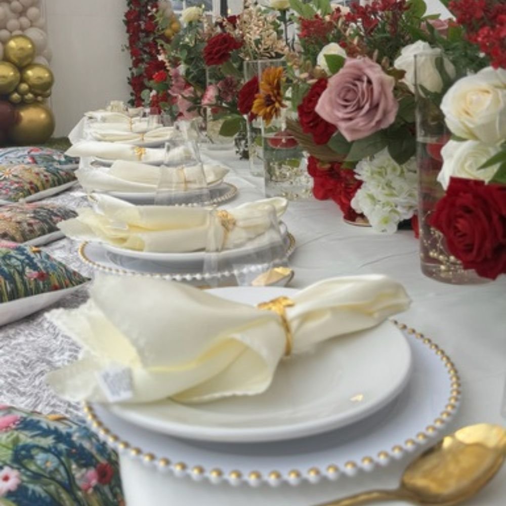 Guest table styling plays an important role in the overall atmosphere of an event. Our guest table setups are arranged to create an elegant and welcoming dining environment for your guests.